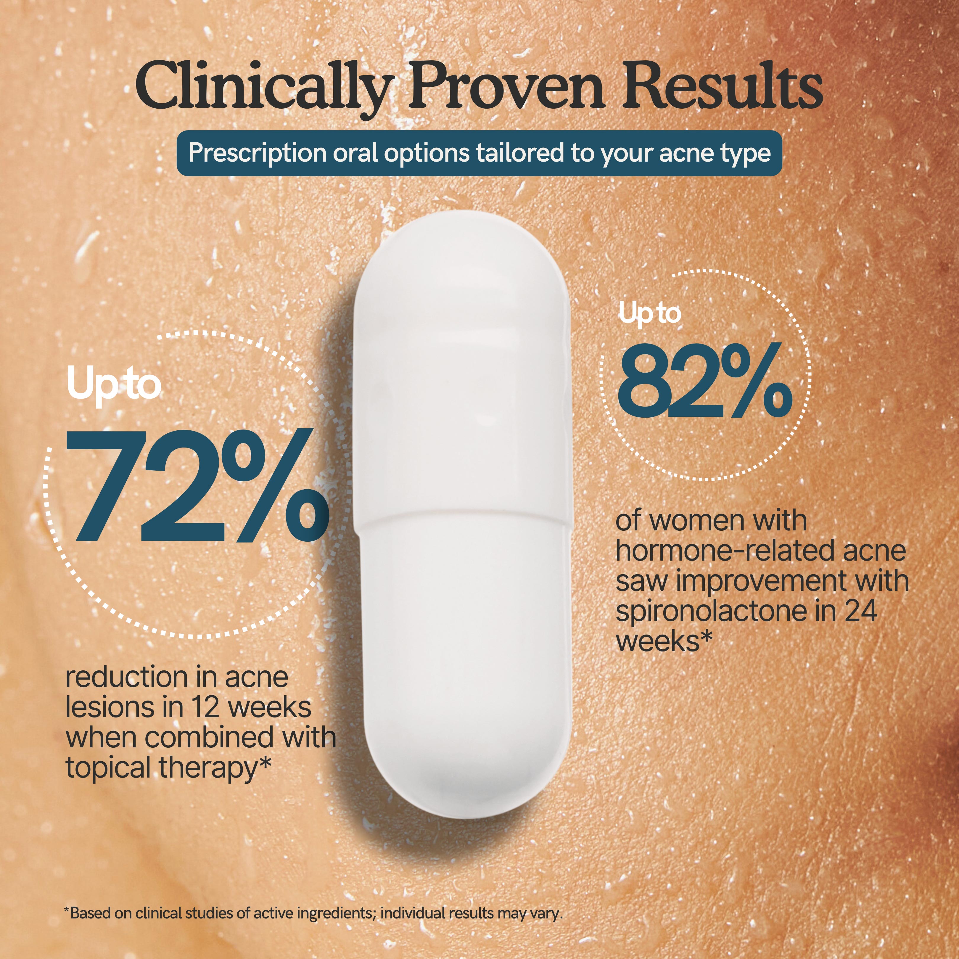 A highly effective, prescription-only pill designed to target the underlying causes of acne—ideal for cases where topical treatments alone aren't enough.