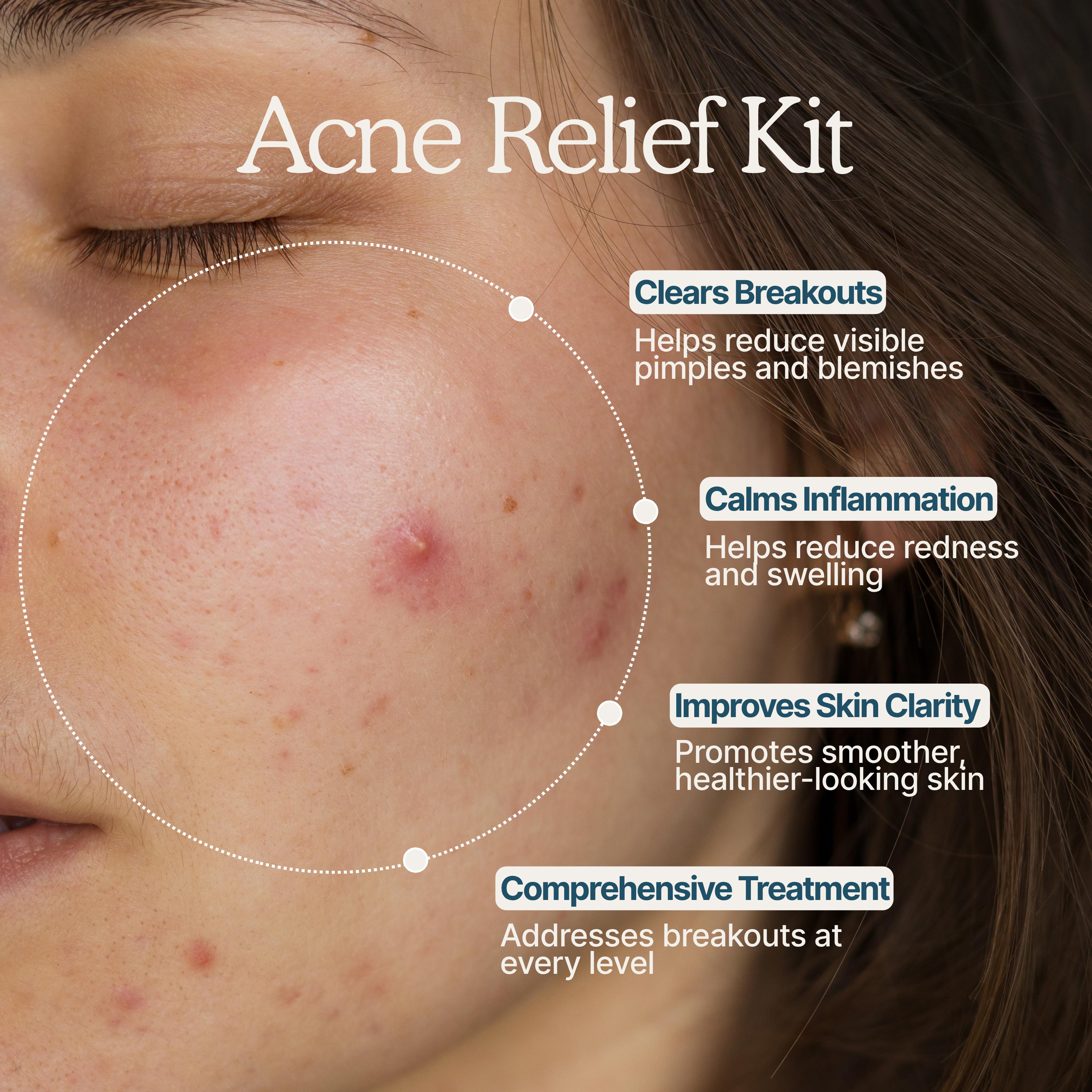 The only prescription system that combines topical, oral, and cleansing treatments to treat acne from every angle. The Acne Relief Kit contains The Acne Relief Cream, The Acne Relief Capsule, and The Acne Relief Face Wash.