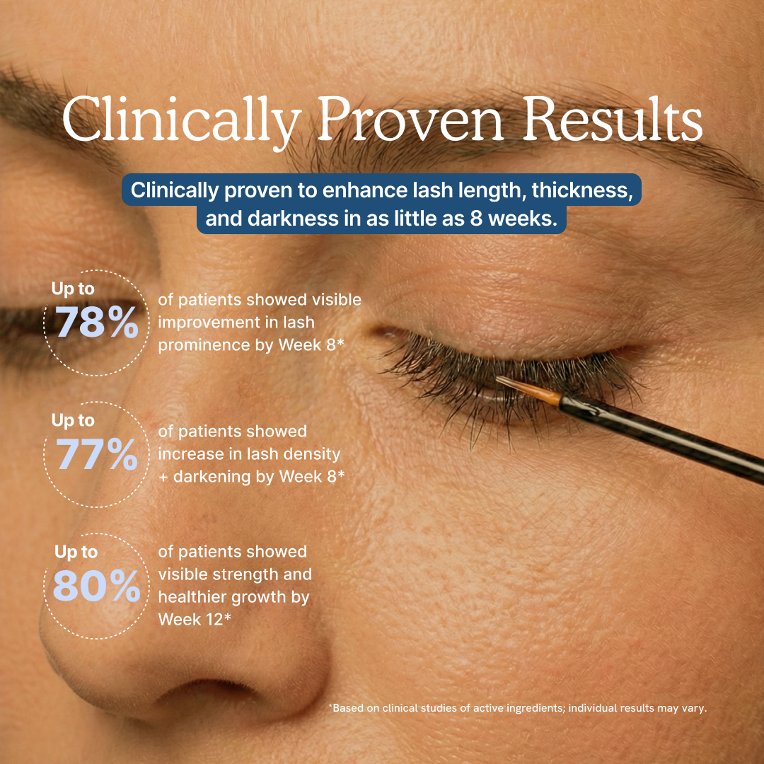 No more fakes, glue, or endless routines. Just your real lashes and brows, finally thriving. This prescription serum reawakens dormant follicles, helping your lashes and brows grow thicker, darker, and more even. Like the full, natural look you had before.